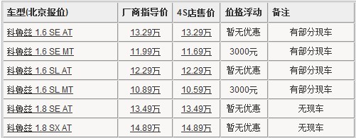紧凑轿车雪佛兰科鲁兹于4月18日全国同步上市销售,最终价格区间定为10.89万元~14.89万元。全新的设计、全新的技术,并凭借上海通用出色的营销团队,使科鲁兹一度成为车市最火爆的车型。近期,编辑从雪佛兰北京经销商处获悉,科鲁兹1.6L手动车型已被列入国家“节能汽车”目录,购车可享受3千元节能政策补贴。详情见下表: