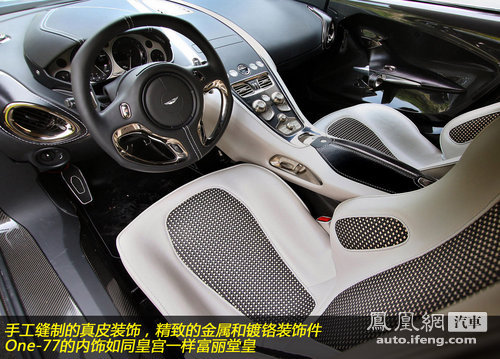 坐进One-77立刻感觉到如同置身皇宫一样的奢华,手工缝制的座椅采用最高级别的真皮,精致的金属装饰带有手工抛光的痕迹。大量凝聚了英国手工艺者高超劳动水平的结果就是One-77不仅仅是一台性能卓越的跑车,更是一台可以移动的行宫。当你被名厂Sparco出品的跑车座椅环抱于中时,那种被巨大财富所包围的感觉真的是妙不可言。