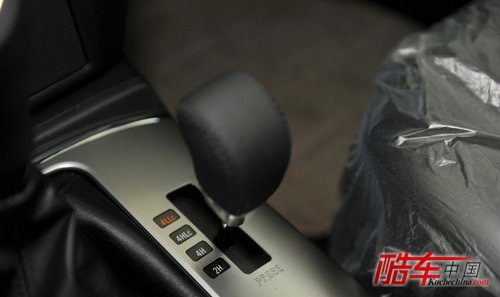 中控台的最下方的两个挡把应该算是车内最大的亮点。不,应该说是最能说明帕杰罗身份的证明。左侧的手自一体排挡杆自然不必细说。右侧的驱动模式传输排挡杆实实在在的告诉人们,这是一款真正的越野车。不仅在两驱与四驱之间切换,还有在中央差速器锁啮合下的两种四驱模式。特别提示:在“4LLc”低挡中央差速器锁啮合的四驱模式下,也就是我们常说的低速四驱。因为它的应用范围主要是提供在应付陡坡以及沙地、泥泞或者其他难以行驶的路面上低速行驶时输出最大扭矩。所以对于这种带有自动变速器的车在“4LLc”模式下车速不要超过70km/h的车速。