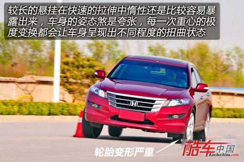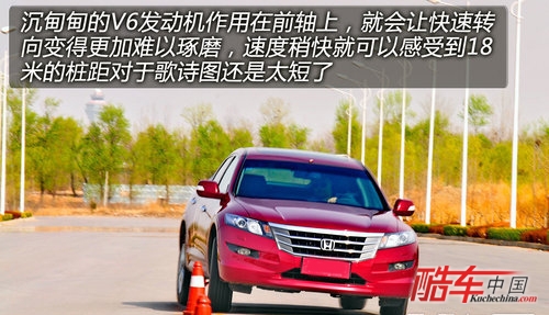 沉甸甸的V6发动机作用在前轴上,就会让快速转向变得更加难以琢磨,速度稍快就可以感受到18米的桩距对于歌诗图还是太短了,经常会导致下一个入桩的失败。不过即便是把握好不太容易控制的转向节奏,车尾也会因为抓地力不是很理想的轮胎而出现滑动。不过ESP系统并没有非常明显的介入(在按下关闭按键的情况下),这说明本田对歌诗图用户的驾驶水平还是比较放心的。