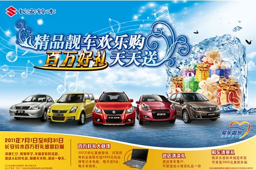 据了解,除了“百万大礼回馈”以外,针对今年7-8月份节日和纪念日多的特点,长安铃木各地特许经销商还将适时推出一系列有针对性的活动,其中包括七一主题日活动、香港冰爽游、世界人口日活动、建军节活动、七夕情人节活动、礼祝考生、夏日家庭派对、夏日消暑派对等等。不仅如此,长安铃木一直在执行的“进店清凉礼”、“购车清爽礼”等常规活动,在7-8月期间照样延续。活动种类之多、促销力度之大,可以说是前所未有的。