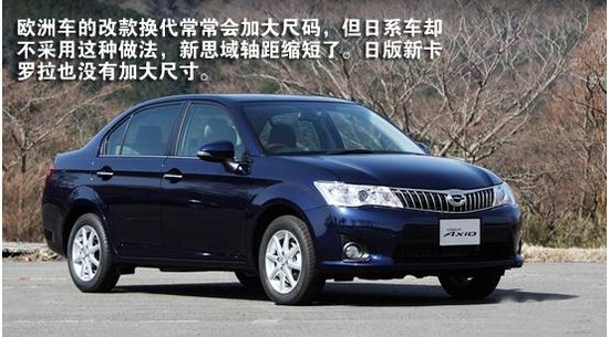 目前欧洲车的改款换代常常会加大尺码,甚至还在某些地区进行加长轴距。而日本车在推出换代车型时却已经不再以加长加宽为卖点了,例如本田CR-V长度缩小了、新思域轴距缩短了。新一代卡罗拉 Axio轿车版的长宽高分别为4360毫米、1695毫米和1460毫米,车身长度较上一代车型缩短了50mm,而轴距依然保持2600毫米不变。