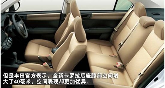 尽管车身更加的紧凑,但是丰田官方表示,全新卡罗拉后座膝部空间增大了40毫米,空间表现却更加优异。而旅行车版车长则减少了60毫米,但当后座椅放倒后,行李箱最大纵深可达到410毫米,比上一代车型增加了90毫米。