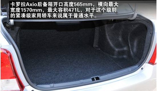 空间利用方面新一代卡罗拉同样继承了日系车一贯的高水平,提供了丰富的储物空间。前后杯架、车门储物槽以及小型储物盒使用起来都很方便,同时副驾驶座前也拥有双层的手套箱设计,更便于分类放置物品。Axio后备箱开口高度565mm,横向最大宽度1570mm,最大容积471L,对于这个级别的紧凑级家用轿车来说属于普通水平,毕竟日本做事风格比较节俭,避免空间与材料的浪费。