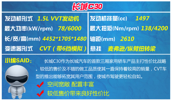 推荐车型一:长城C30 (1.5L+6CVT)