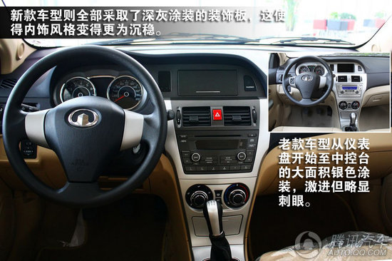 内饰设计风格和长城其它家用车型很相像,黑色、米色、银色搭配的内饰在不失实用性的同时也在着力提高其档次。只是受限于价位,在用料方面还是有所保留,整体仍以触感较硬的塑料件材质为主,好在长城精良的做工可以略微弥补一些用料上的不足。