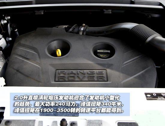 在动力方面,极光目前全系只配备一台2.0升直喷涡轮增压发动机,这也是目前路虎家族唯一一款搭载四缸汽油发动机的车型,也算是迎合了当下发动机小型化的趋势。这台发动机可以提供240马力的最大功率和340牛米的峰值扭矩,而且峰值扭矩在1900-3500转的转速输出平台都能得到。与之匹配的是一台6挡自动变速箱。