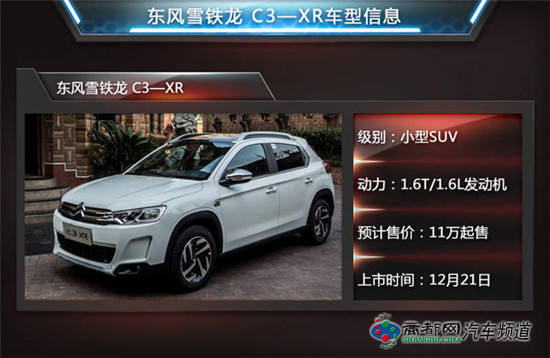 在本月即将推出的SUV中,东风雪铁龙C3—XR可谓是备受瞩目。在广州完成了中国首秀后,该车将于12月21日正式上市销售。目前新车已正式启动预售。动力方面,东风雪铁龙C3-XR将搭载1.6THP涡轮增压发动机,最大功率120kw,峰值扭矩240N.m,与之匹配的是一款6速手自一体变速箱。此外该车还有1.6L自然吸气发动机可选。C3-XR搭载了多路况适应系统,可选择公路、沙地、雪地和泥地等多种驾驶模式。