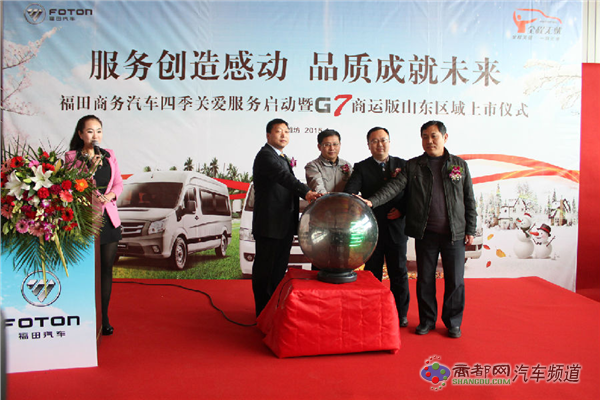 2015年1月30日,福田汽车集团轻型商用车(LCV)事业本部旗下的福田商务汽车 “四季关爱”服务启动暨G7商运版上市仪式在山东潍坊隆重举办,为长期以来给予福田汽车大力支持的新老客户提前送上一份厚重的羊年大礼,开启全新价值体验风暴。