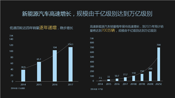 传统出行市场下滑,经销商面临转型升级:传统二轮/三轮电动车经过多年发展,已经到了一个饱和期。行业从产品技术研发、到生产平台打造,再到市场渠道营销、品牌格局已基本稳定。近些年,随着电动车新国标出台,摩托国四标准出台,二轮摩托车和电动车销量已呈现逐年下滑的态势,很多经销商都面临着转型升级;相反,新能源汽车作为国家重点扶持产业每年销量却迅猛增长,近万亿的市场规摸亟待开发,未来十年将是新能源汽车的黄金爆发期。