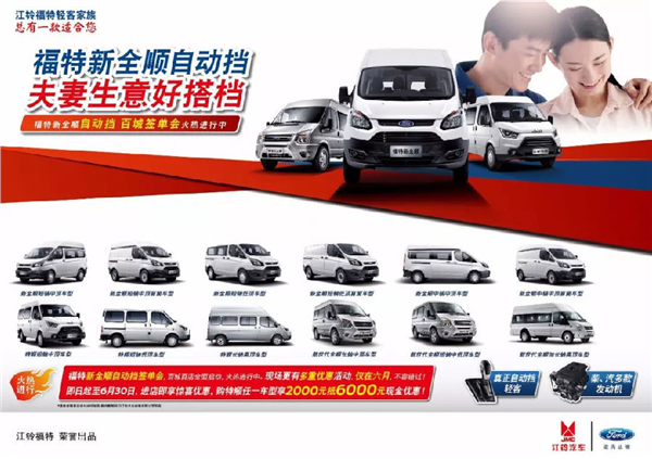 炎炎夏日,好礼相送。为回馈车主,福特新全顺诚意满满,即日起,福特新全顺自动挡签单会正在百城百店火热进行中,现场更有多重优惠等你来拿。如此精彩的年中大party,您还在犹豫什么?赶紧来4S店一探究竟吧!(注:具体详情请咨询当地经销商,最终解释权归江铃汽车销售有限公司所有。)