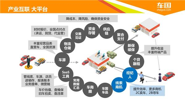 针对效率提升的问题,定位“汽车金融科技平台服务商”的车国,在搭建“车贷金融风控平台、车源分销平台、车商服务平台、线下门店加盟体系”的同时,给出了应对效率提升的解决方案“全民汽车经纪人”。通过网络整合行业资源参与者(汽车销售业者、维修改装业者、保险代理、驾校教练、网络意见领袖、论坛博主、网红大V等),为车商赋能,帮助商家多卖车,亦满足广大三线及以下城市的消费需求,提升这一群体对汽车消费的认识和了解。
