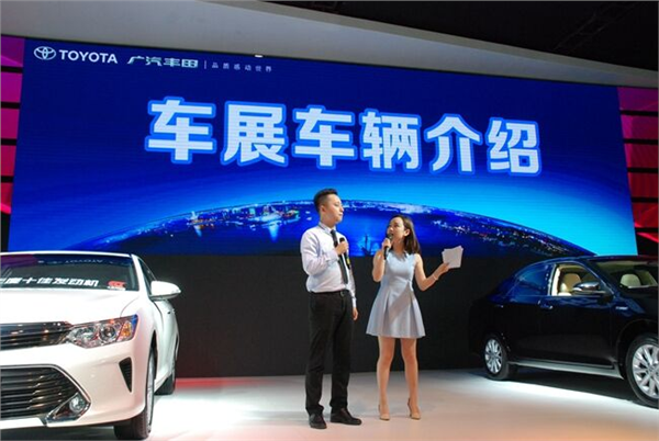 广汽丰田展台采用了通栏大LED显示屏,滚动播出车型信息,辨识度极佳,很是惹眼,活动现车吸引了大量人群围观,场面热闹非凡。