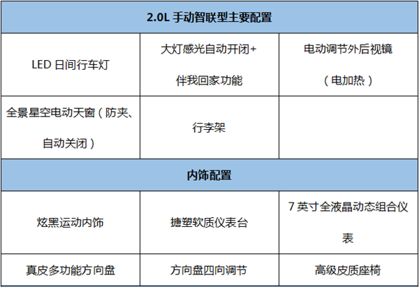 动力方面,智联型搭载的是一款2.0L自然吸气多点电喷发动机,最大功率达到104KW /6000rpm,最大扭矩为178N·m/4000-4500rpm。与之匹配的是一台6挡手动变速箱,动力与操控兼备。智联型底盘采用了前麦弗逊式独立悬挂,后多连杆式独立悬挂,经英国老牌汽车工程公司MIRA调教,扎实沉稳,并结合中国的路况进行深度优化,在舒适性与运动性之间找到绝佳的平衡点。