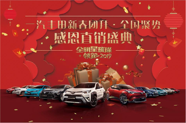 在2019年春节即将来临之际,一汽丰田汽车销售有限公司(以下简称“一汽丰田”)于1月12日举办了“领跑2019,新春团拜·感恩直销盛典”活动,该活动以广州(华南大区)为主会场,并与其它6大区的分会场同步进行,同时,遍布全国的630家一汽丰田经销店,亦给到客户年末购车钜惠福利。