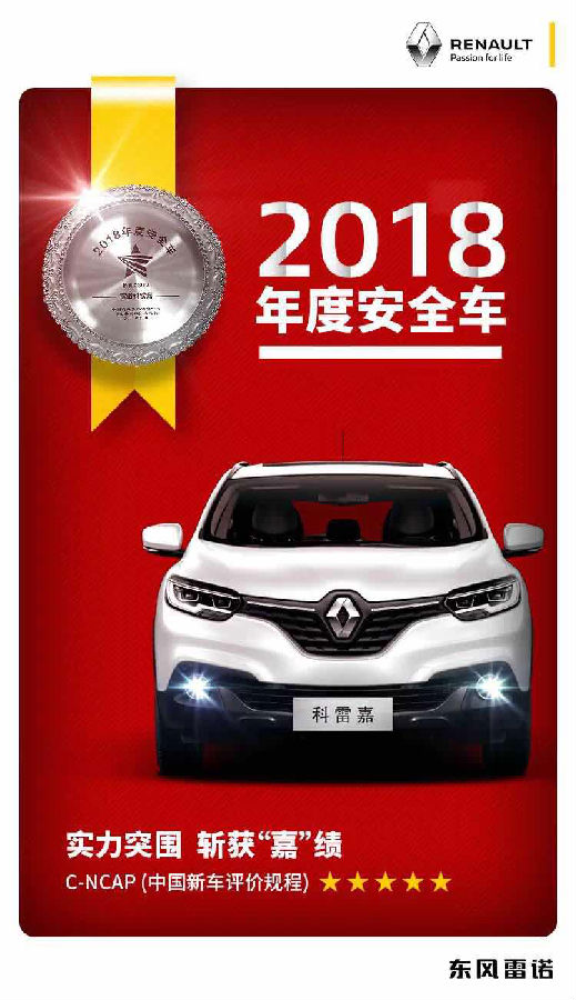 安全性是衡量一辆车的根本尺度,尤其面对远郊崎岖莫测的路况,安全性则更为重要。科雷嘉标配6安全气囊,不遗余力、不计成本的确保“安全畅行”,相比柯珞克低配车型仅搭载2安全气囊的做法,平等关照每一位用户的安全,让用户真正畅行无忧、安享品质生活。科雷嘉前防撞梁使用高达1500MPa热成型钢,并且车身高强度钢材比例达到70%以上,热成型冲压技术保证车身轻量化的同时又能确保车身的刚度。值得一提的是,凭借过硬的欧系品质,科雷嘉车型获得C-NCAP和E-NCAP双五星认证。此外,科雷嘉还被C-NCAP管理中心唯一官方平面媒体《世界汽车》杂志评选为“紧凑级SUV级别‘2018年度安全车’”。