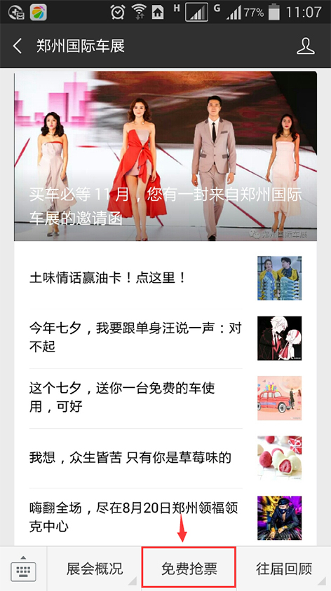 1.关注“郑州国际车展”微信公众号;