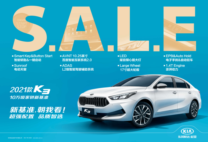 同时,为减轻车主购车压力,2021款K3更有“0首付 0利率”的金融政策,先使用再付款,到店即可提车,低门槛让买车更加简单,也让用车之路多了一份轻松,多了一份安全,少了一份压力,就像是给消费者的一份“年终奖”。