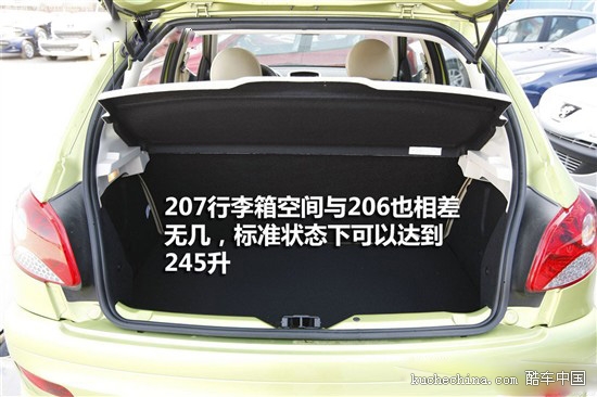 车内空间不算出色,后排乘客可能稍显拥挤,而且头部空间也不大,要是高一点的乘客可能坐起来就有些难受了,207行李箱空间比较大,后排座椅未放倒时提供245升的后备厢空间,容纳拉杆箱等物品毫无问题。后排整体放倒后,后备箱空间达到1130升。一般家庭使用足够了。