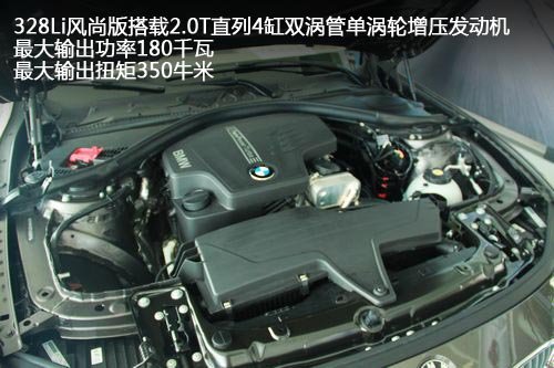 328Li风尚版搭载2.0T直列4缸双涡管单涡轮增压发动机,并具备Valvetronic电子气门系统,该项技术显著降低了耗油量,同时明显提高了整个发动机转速范围内的性能。其最大输出功率180千瓦,最大输出扭矩350牛米,百公里加速时间6.3秒,百公里油耗7.2L。
