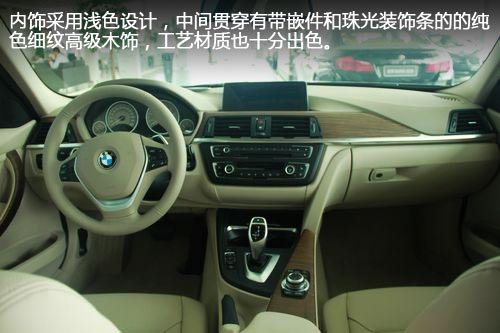 328Li风尚版内饰采用浅色设计,中间贯穿有带嵌件和珠光装饰条的的纯色细纹高级木饰,工艺材质也十分出色,看起来依旧很豪华。其中仪表盘、方向盘、空调面板等处设计与5系也很相似。