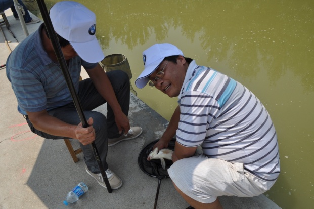 比赛过程中不断有车主朋友成功钓上鱼来,大家一起分享选手们胜利的喜悦。活动当天天气很炎热,可是没有一位选手为此分心,大家把钓上来的鱼装好马上就又下鱼饵继续比赛。