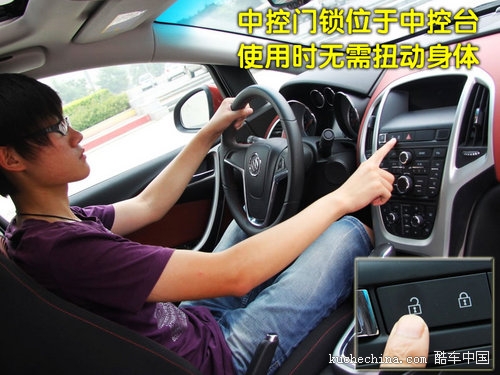 别克英朗GT采用了单独的中控门锁按钮,每次操作驾驶员只需按位于左侧的按钮即可,操作简单方便。驾驶员无需转动身体,只要伸手一按便可轻松的完成操作。