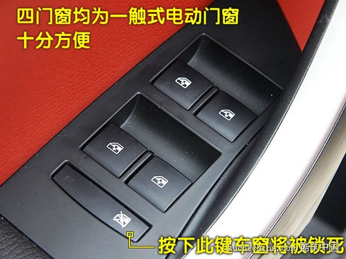 别克英朗GT的车窗采用了一触式升降功能,驾驶席控制区可轻松控制其它车窗。车窗锁死按键可以控制处驾驶员之外的三个车窗,提高了整车的安全性。