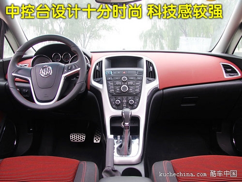 别克英朗GT的中控台依然延续了美系轿车的动感时尚、做工精细的经典布局,显示屏与音响等各项控件对称地分布在中控面板上,高配车型配电动双开启天窗。