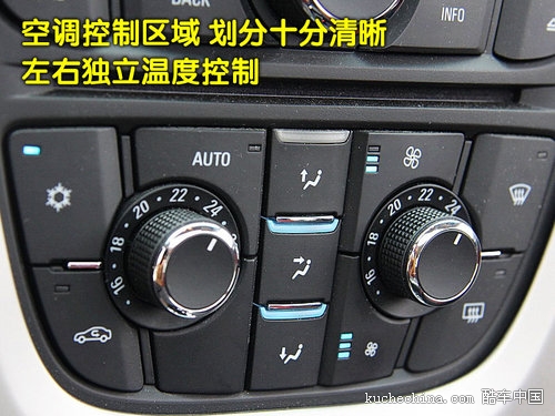 别克英朗GT配备的是全自动空调,空调面板功能区域分工明确,操作比较简单,非常容易上手。只是似乎该增加一些时尚的气息。中控台的各按键、旋钮在使用中各项调节功均能准确到位。