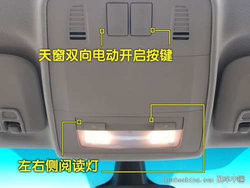 别克英朗GT两侧遮阳板之间为驾驶席和副驾驶席分别提供了独立式的阅读灯,方便车主与乘员在夜间查看地图等。