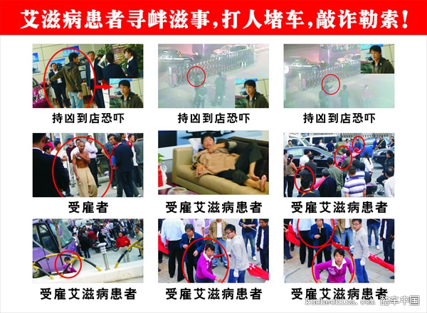 事发当天,4s店工作人员在悬挂条幅对外澄清时,遭到对方的大力阻挠,几名患艾滋病妇女开始抓人、咬人,在维护公众及工作人员安全中,该店多名员工不同程度遭受患艾滋病妇女的辱骂、咬伤、抓伤。就在该店工作人员接受媒体采访的时,滋事雇佣者竟动手殴打该店受访人员,何蕴兴委托人乔勇手持砖头与几名患艾滋病妇女还多次进店追打4s工作人员。(这些都在都市频道的镜头中有显示)虽然警察出面警协调,但何蕴兴委托人还是大肆鼓动周围不明真相的群众进行砸店,并将4s店大门推倒,并扬言见一个打一个。六日下午4s店已经对滋事者提出了公诉,都市频道也对事件进行了跟踪报道。想了解的人可查看10月7日的都市报道。因为国家有相关规定,对该病患者不得进行报道,所以在10月6日报道中并未涉及,希望大家擦亮眼睛!