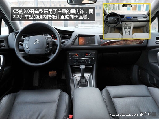 雪铁龙C5在安全方面的配置还是比较全面和周到的,ABS+EBD、牵引力控制系统(TCS)、电子稳定系统(ESP)都是全系标准配置。2.0升车型除了在动力配置方面缺乏亮点以外,在舒适性配置方面也是绝对的入门级。显然2.3升排量的动力系统更具性价比,真皮电动调节座椅、双区恒温空调、USB接口都是2.3升及以上车型才有的配置。而略显遗憾的是,我们今天的主角,10探头的“智能泊车辅助系统”只配给了顶配的3.0升旗舰车型,而其它排量车型只标配图像式的倒车雷达,这一点多少算是个遗憾。