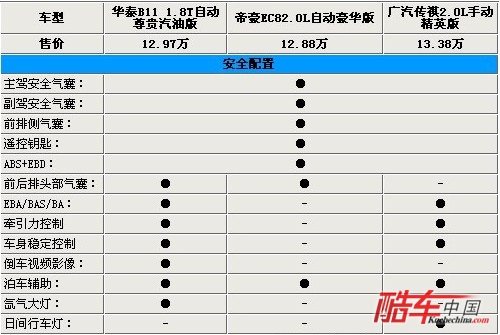 一款商务车你可以不注重它的操控能力、也可以不注重它的承载能力,但必须要注意的就是安全性。三款车在安全性配置方面表现的略有差异,华泰B11为使用者提供了大量安全性配置,广汽传祺也在一些辅助型安全配置方面给予了很大的支持,只有帝豪EC8仅仅为使用者提供了基础的安全配置,至于更深入的则没有提供。