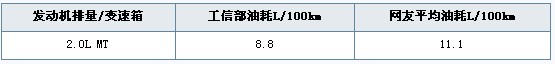 2.0L发动机动力参数:最大功率110kW/6000rpm;最大扭矩180N·m/4500rpm