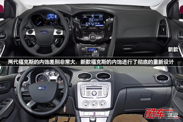 新款福克斯的动感特性通过独特的内饰设计得到了加强。新车的内饰设计极具现代感,时尚的中控台环绕着驾驶座,使驾驶员可以非常方便地使用车辆的主要控件和显示面板。同时,两代福克斯的内饰差别非常大,新款内饰进行了彻底的重新设计。