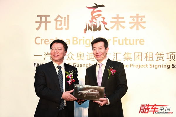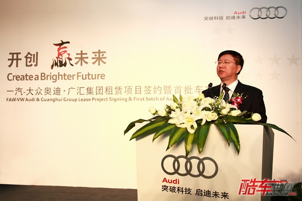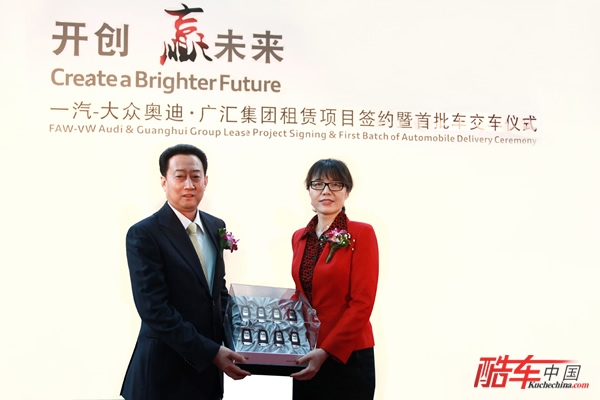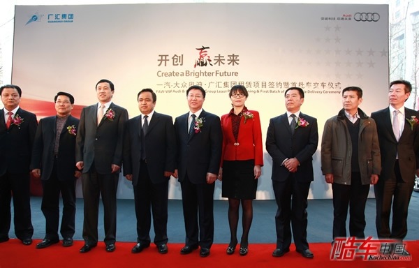 2011年3月24日,一汽-大众奥迪与新疆广汇集团“一汽-大众奥迪•广汇集团租赁项目签约暨首批车交车仪式”在乌鲁木齐中天广场隆重举行,双方在现场签订了1,500辆奥迪的租赁订单,并由此创造了高档车品牌最大单笔租赁订单的纪录。这也标志着奥迪品牌凭借多年来在中国高档车市场的领先优势和品牌影响力,强势进军中国高端汽车品牌租赁市场。活动当天,新疆自治区副主席艾尔肯•吐尼亚孜、一汽-大众奥迪销售事业部执行副总经理张晓军、广汇集团董事会主席孙广信等出席了仪式。