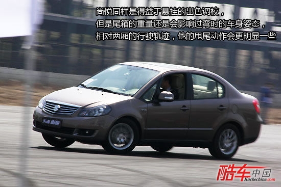 进行同样环节的除了天语两厢车型,还有三厢版本尚悦。这次驾驶的是搭载1.8升发动机,4速自动变速器。动力方面比1.6升发动机略有提升,但不是十分明显,估计与车重增加有很大关系。如果是搭载1.8升的两厢车型相信会有非常不错的提速感。尚悦同样是得益于悬挂的出色调校,但是尾箱的重量还是会影响过弯时的车身姿态,相对两厢的行驶轨迹,他的甩尾动作会更明显一些,以至在邻近极限的状态下,操控性能要比两厢稍弱一些。
