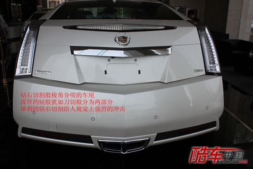 还是来细细品位这颇具棱角的后背线条,无论是几乎接近平行的C柱还是硕大的连接车顶和车尾的尾灯都洋溢着硬朗的味道,很佩服CTS COUPE的设计师能坚持这种毫不妥协的设计理念。
