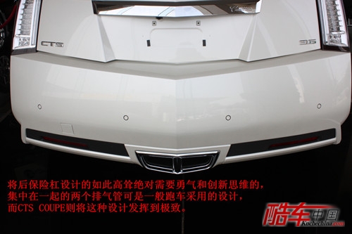 CTS COUPE车身尺寸为4789*1883*1426mm,在所谓的“Power Magic 2”理念的驱使下,设计师将整车高度降低2英寸、后轮距增加2英寸、后悬减小2英寸、前风挡玻璃倾角减小2度,这一系列的“与2有关的数字”的组合应用,魔法般地营造出视觉重心更居中、造型更动感的外观设计。将后保险杠设计的如此高耸绝对需要勇气和创新思维的,集中在一起的两个排气管可是一般跑车采用的设计,而CTS COUPE则将这种设计发挥到极致,犹如切割般的线条让人一看便有种手指发烫的感觉,是不是呢?