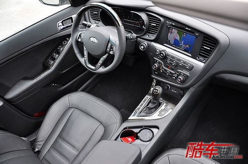 东风悦达起亚K5的内饰同样不乏亮点,中控台以96度角倾向驾驶员一侧,方便了驾驶员的操作。内饰材料也更高档,更符合其中高级车的定位。大量软性材料的使用使得触感更加柔和,各部件的装配工艺水平也有很大的提高。K5仪表盘的布局和大众车系类似,中央的人车交互系统分为上下两组,上面的为彩色液晶屏,显示车辆的动态信息,下方的冷光屏显示常规的车辆信息,阅读起来十分方便。