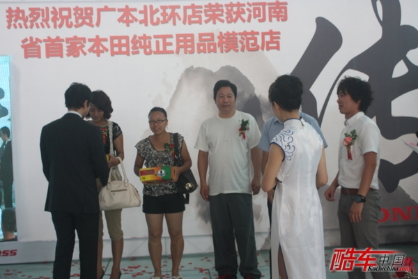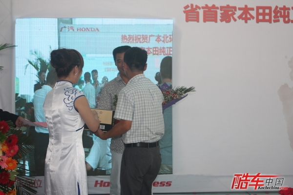 广本北环店总经理为今日首位雅阁车主颁奖