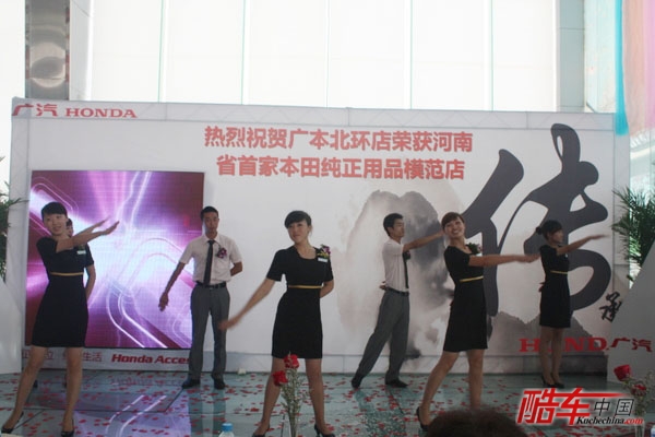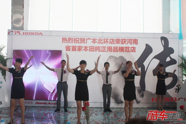 导读:2011年7月23日,广汽本田北环4S店举行盛大庆典,庆祝该店荣膺“河南省首家本田纯正用品模范店”。广本北环店广大客户,河南电视台《车舞飞扬》携其他电视媒体和河南省各大主流网络及报纸媒体悉数到场,共同鉴证这一盛会。