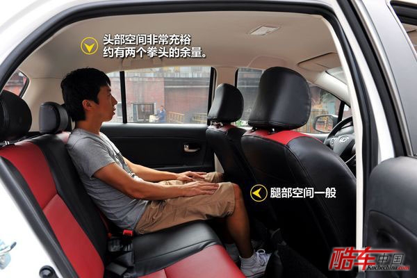 后排座椅的舒适度和前排保持一致,靠背还具有角度可调功能,可以有效地缓解乘坐疲劳。同时后排中央采用了全平地板设计,可以提高后排第三人乘坐的舒适性。从空间方面来看,腾翼C20R的腿部空间不算宽敞,坐进去后腿部基本没有太多余量,不过头部空间非常出色,头顶上约有两个拳头的距离。