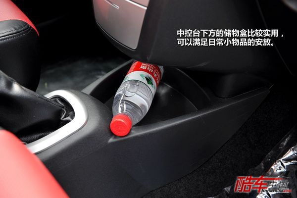 腾翼C20R的储物空间并不算多,全车内只有一个杯架,感觉不太够用。中控台下方的储物盒比较实用,可以满足日常小物品的安放。另外,后门上也设有储物盒,这在小型车上还是很少见的。