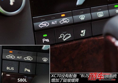 如果你拥有一辆S80L,那么当你钻入XC70的车内时,一切都会让你感到如此亲切,除了坐姿有些高之外,两者几乎一模一样。当然,这必定是一辆SUV,陡坡缓降系统还是不能缺少的。而且在这里还取消了S80L上的“BLIS”盲区监测系统,其实这套系统本身的意义真的不大,尤其是在经常拥堵的北京行车,开启它时不停闪烁的指示灯就足以把你闪晕。
