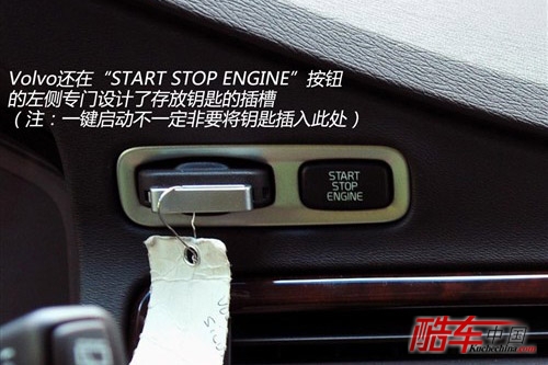 仪表盘造型简洁,诸多信息都被集成在转速表中间的液晶屏之中,操作按键则位于左侧的转向拨杆上。Volvo还在“START STOP ENGINE”按钮的左侧专门设计了存放钥匙的插槽,非常人性化,熄火之后按下钥匙缓缓弹出的一刻,很符合它的气质。
