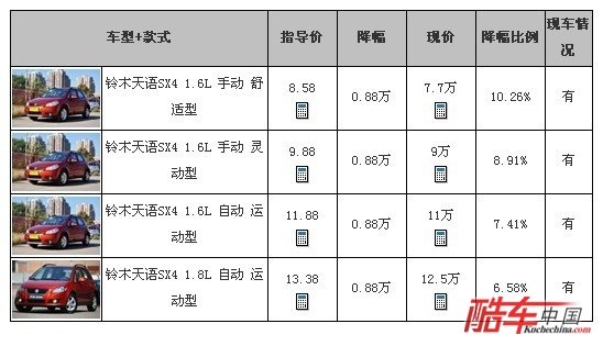 从河南中植汽车销售服务有限公司了解到,西环店的长安铃木天语SX4铃木天语SX4车型可以现金优惠8800元,详情请到店内了解。