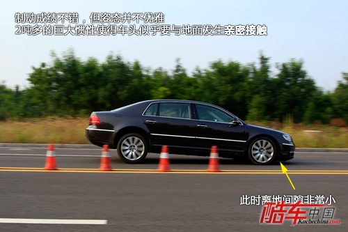 加速不给力是动力和车重造成的,再来看看制动,虽然我们承认辉腾的自身庞大,但作为一款高端豪华车,这不应该是限制制动成绩的理由。欣慰的测试结果非常不错,全程制动成绩都在40米之内,并且没有出现热衰退。