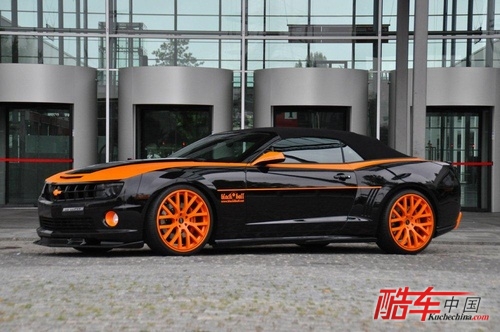 导读:德国改装厂Geiger Cars将雪佛兰科迈罗SS Convertible改成了一辆欧美风格的车。这家总部在慕尼黑的改装厂为这辆美式肌肉车增加了一些德国元素——为6.2升的V8引擎增加了一个新的机械增压器。动力提升至568匹(418kW/560h),扭矩为779Nm.